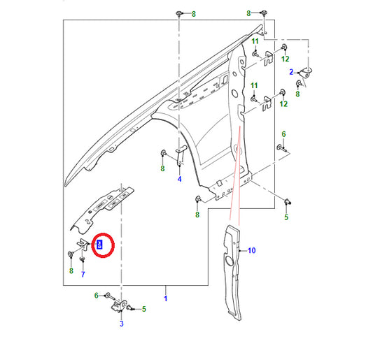 Mocowanie błotnika lewe przód F-PACE (X761) XE (X760) XF (X260), T2H3533